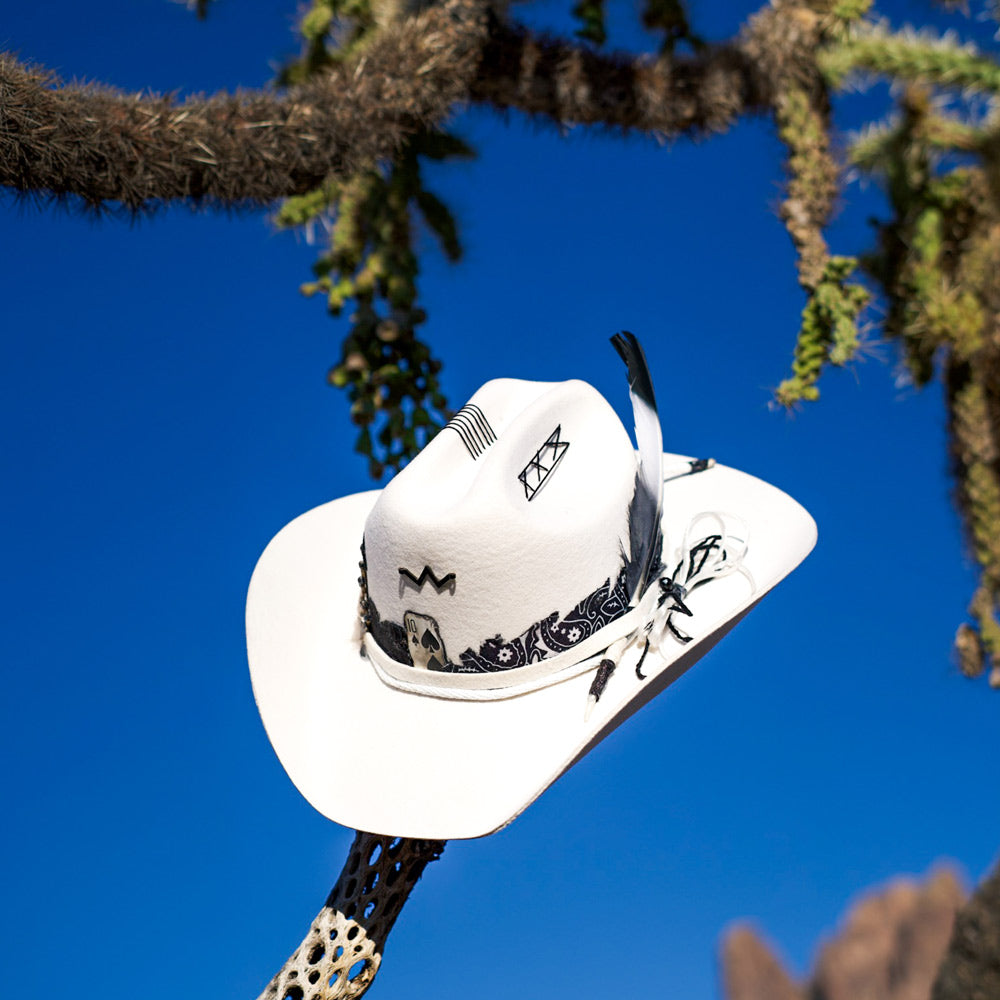 The Rawhide Dawn is a timeless cowboy hat with a soft crown and wide brim, crafted from wool in ivory, tan, or rust. A rawhide band adds authentic Western charm, making this hat a versatile choice for festivals, photoshoots, or everyday wear. It’s rugged elegance at its finest.