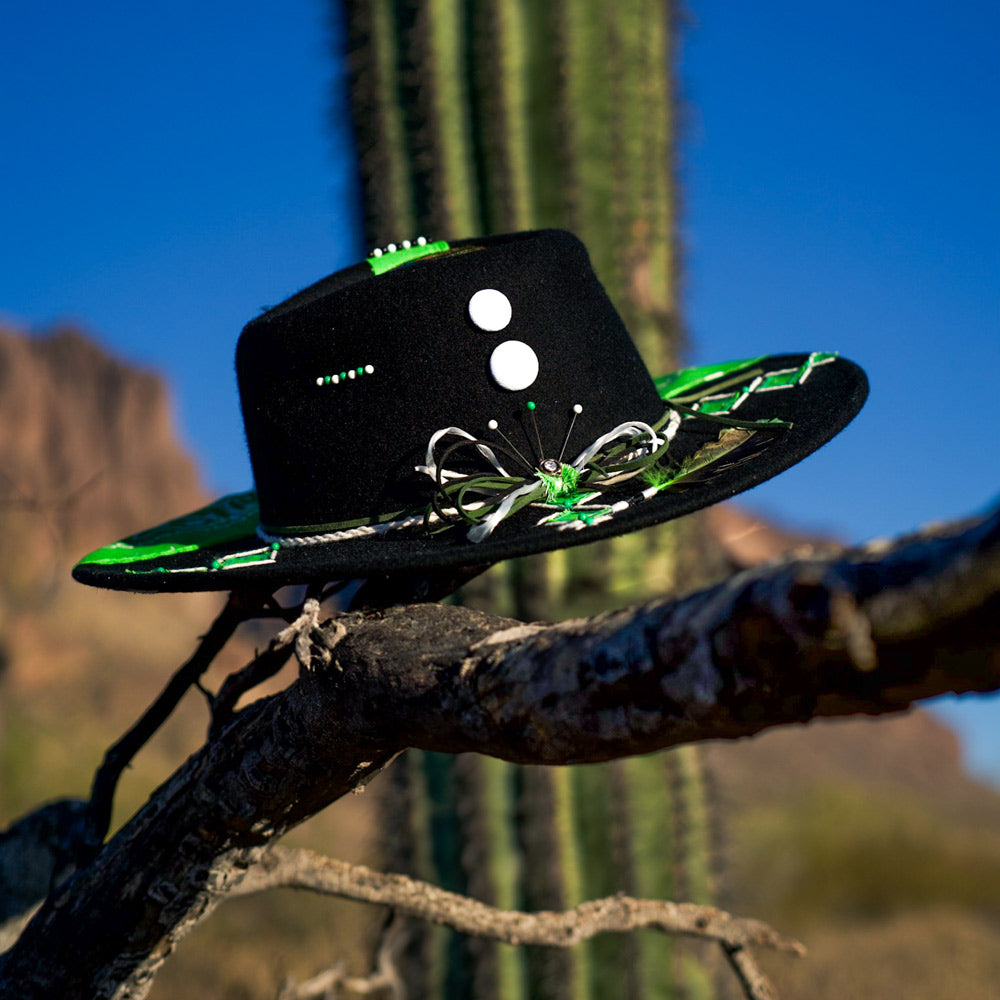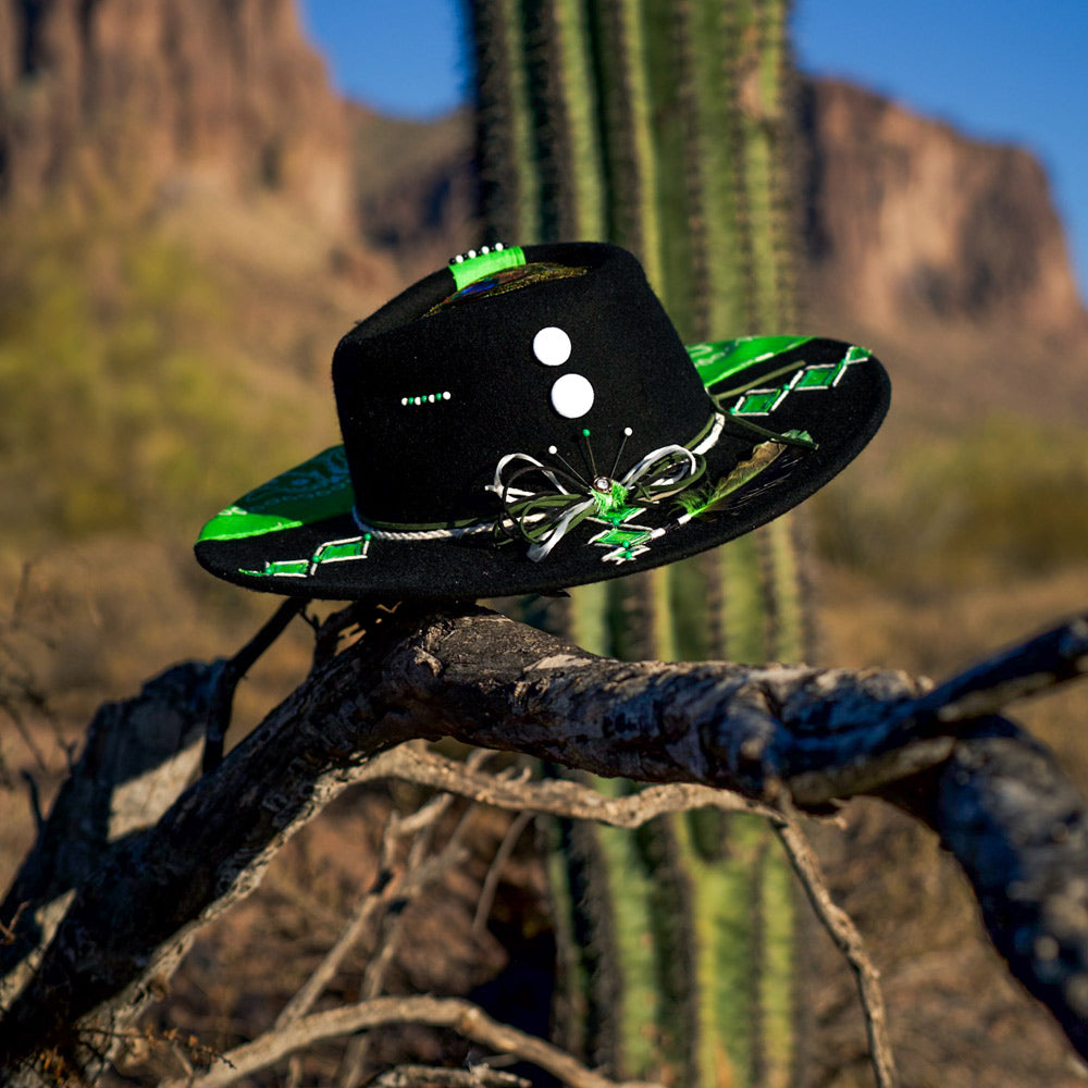 The Starlit Pine evokes serenity with a soft crown and medium-brim fedora silhouette, perfect for winter’s calm. Crafted from wool felt in pine green, charcoal, or ivory, it features pine-inspired embroidery or a wood bead accent for a natural touch. This hat connects you to the earth’s quiet beauty.